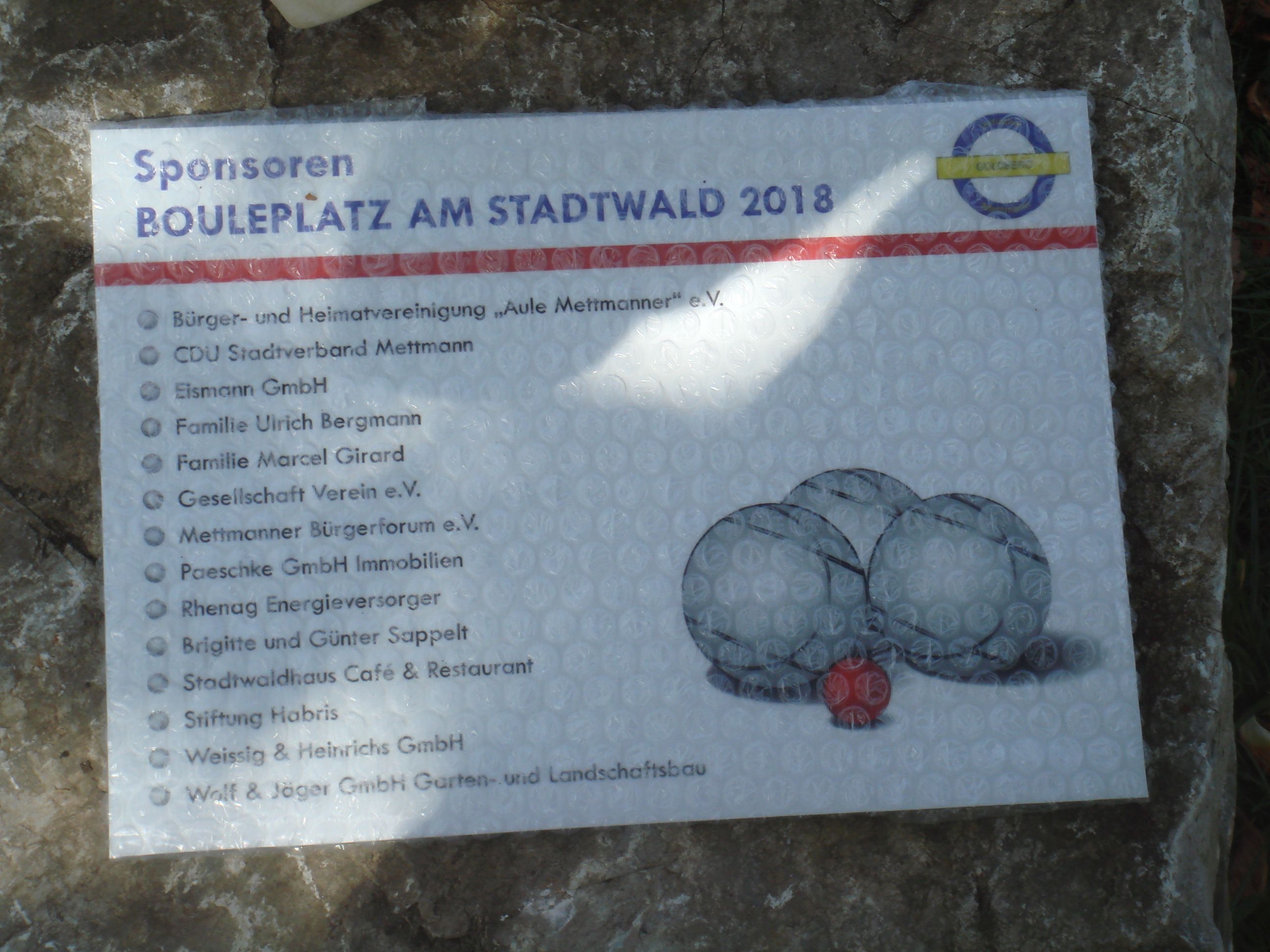 Am 13.Oktober 2018 wurde der Bouleplatz am Stadtwald eingeweiht, dies wurde in der Tagespresse ausführlich berichtet. Wie