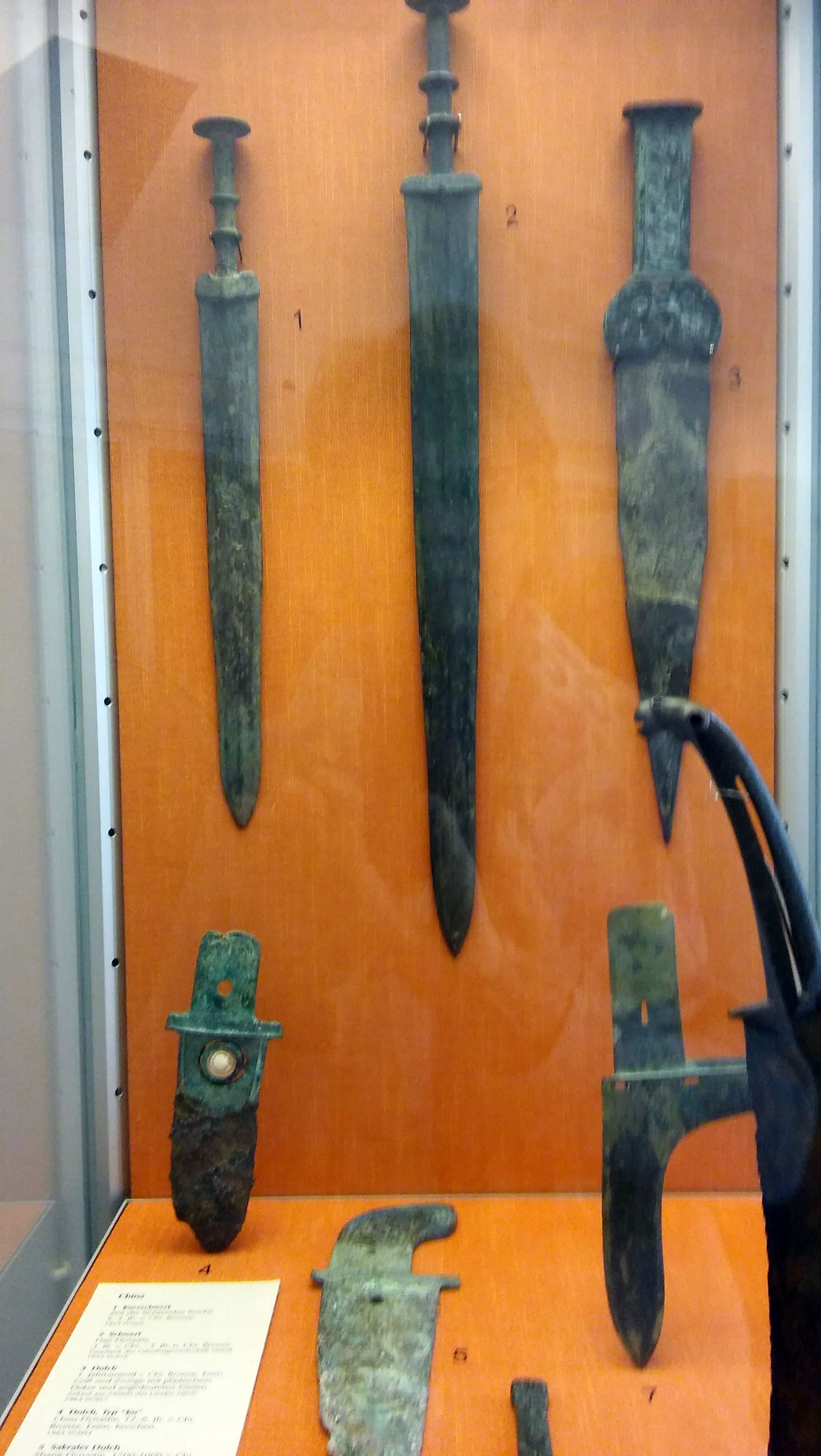 Unsere Zeitreise begann mit der Bronzezeit, über die Antike, ins Mittelalter, Barock und Renaissance bis ins 21. Jahrhundert. So waren Waffen und primitive Schneidwerkzeuge aus