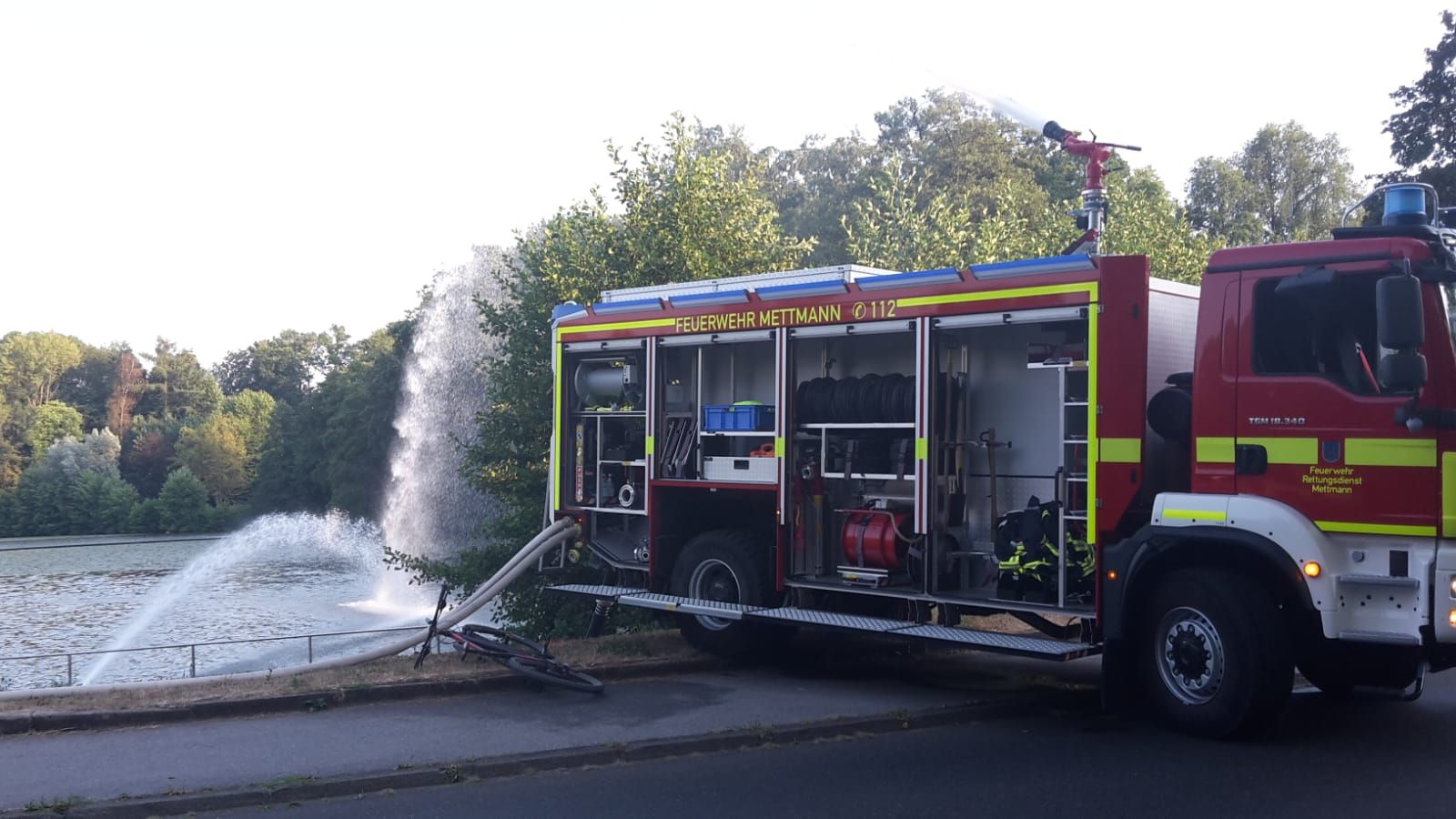 Die Mettmanner Feuerwehr kam am vergangenen Freitag (03.08.2018) und sorgte mit einem Sondereinsatz dafür, dass der Sauerstoffgehalt des Wassers wieder auf das notwendige Niveau gebracht wurde.