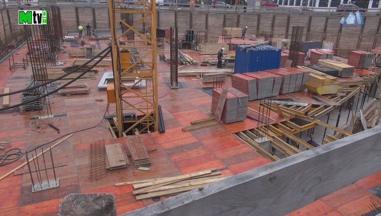 1. Baugrube Haus B zweite Ebene der Tiefgarage wird erstellt.