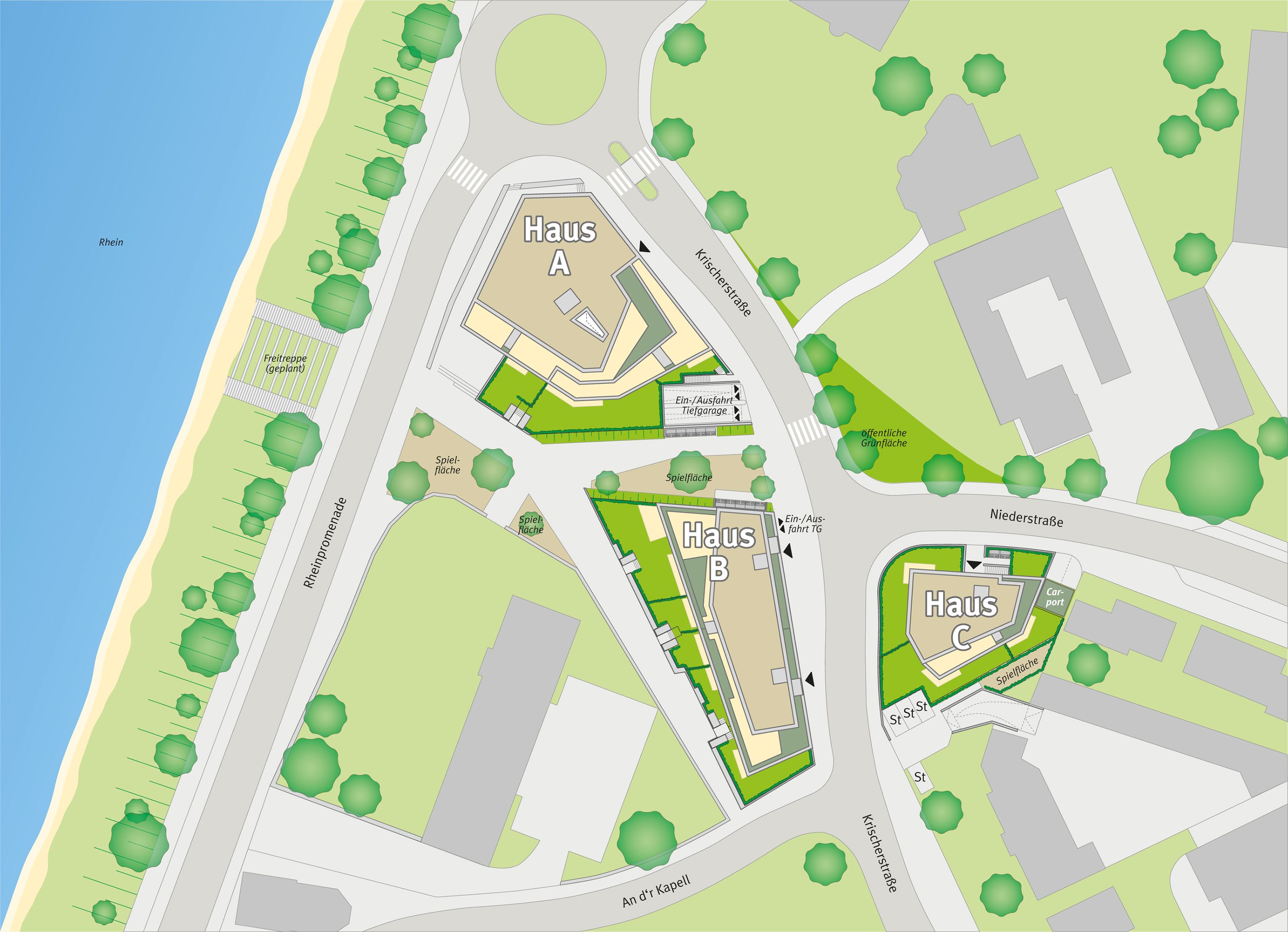Wer von einer Eigentumswohnung in exklusiver Lage mit Blick auf das Rheinpanorama träumt, hat die Möglichkeit, sich diesen Wunsch in unserem Neubauprojekt Rheinkiesel am Stromkilometer 714 zu erfüllen. Spaziergänge, Schiffsfahrten oder Radtouren entlang des Rheins, das fußläufig erreichbare Stadtzentrum sowie die sehr guten Anbindungen an Köln und Düsseldorf machen den Standort.