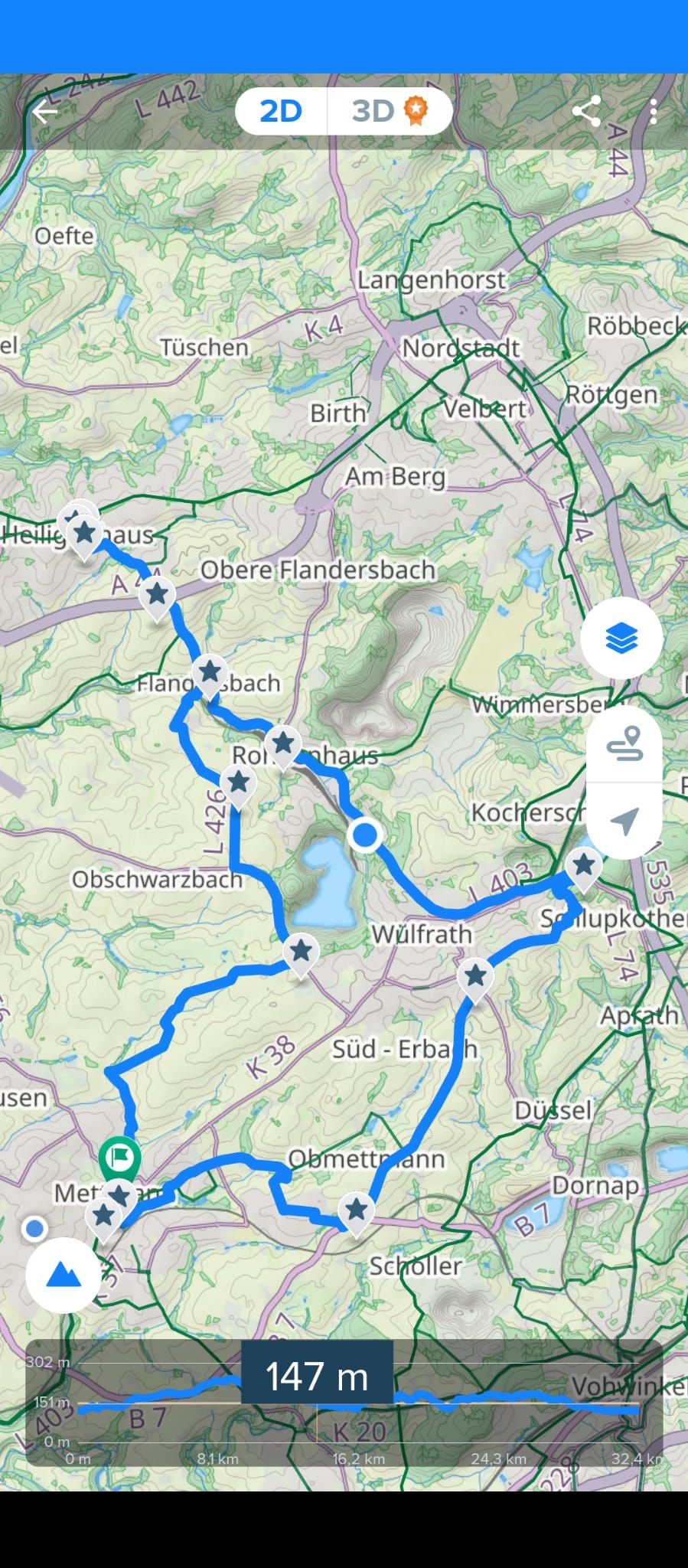 Strecke: Mettmann Jubiläumsplatz-Diepentalsperre-Mettmann-Goldberg 62 Km