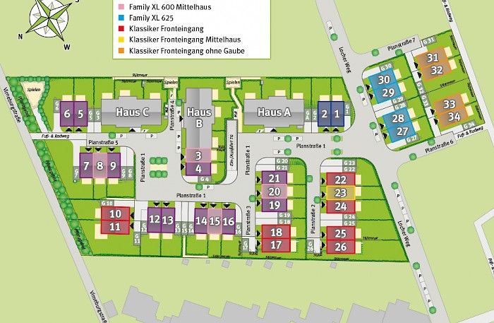 Im ersten Bauabschnitt entstehen 34 Einfamilienhäuser (Doppelhaushälften und Reihenhäuser) in massiver Bauqualität.