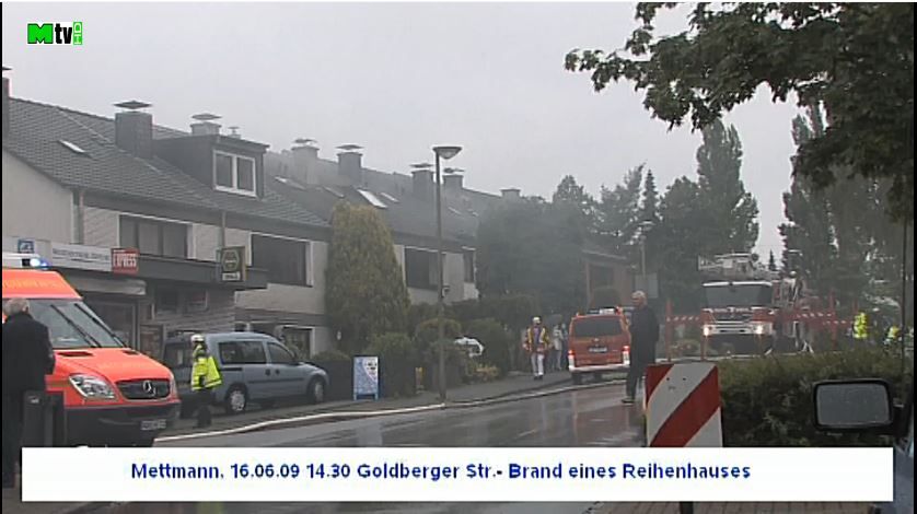 Einen Brand in einem Reihenhaus an der Goldberger Straße in Mettmann musste die Mettmanner Feuerwehr gestern löschen. Vier Fahrzeuge mit 25 Mann rückten aus. Kurz nach 14 Uhr, als gerade ein heftiges Gewitter über Mettmann hinwegzog, war im ersten Obergeschoss des Hauses Feuer ausgebrochen.