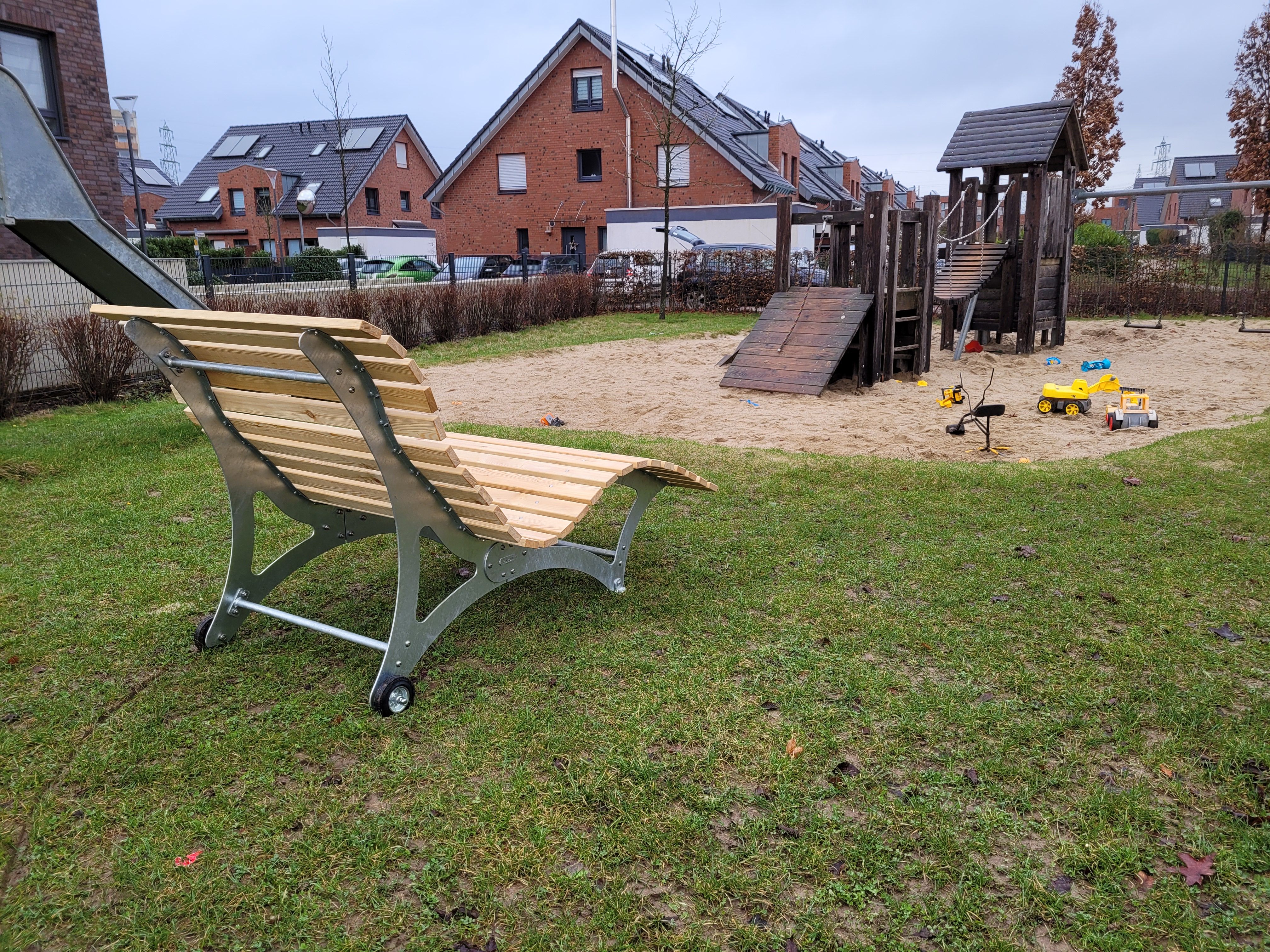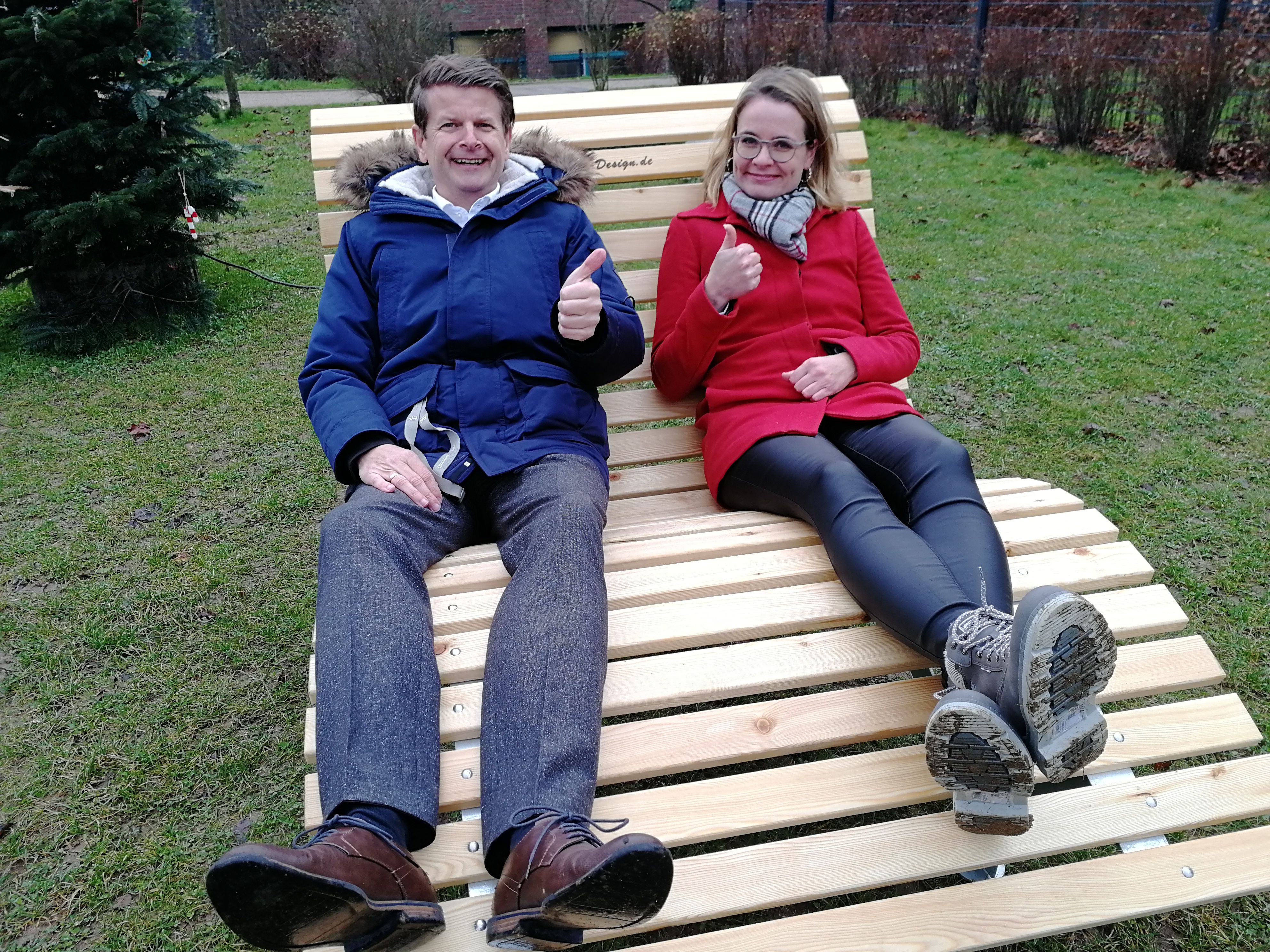 Das Land NRW startete im Herbst die Förderung „2.000 mal 1.000“, bei der Bürgerinnen und Bürger für Aktionen zur Stärkung der Nachbarschaft Anträge auf 1.000 Euro stellen konnten. Davon wurden dem Kreis Mettmann „40 mal 1.000“ gestattet und Sarah Saretzki und Thomas Sterz vom Goldberg steckten die Köpfe zusammen. Sie wurden kreativ, was alles möglich und sinnvoll wäre. So kamen beide zum Entschluss, einen Antrag für eine Doppelliege aus Holz auf dem Spielplatz Am Mühlenteich im Stadtwald zu stellen. Diese sollte bei schönem Wetter allen die Gelegenheit geben, entspannt ein Buch zu lesen oder den Nachwuchs auf dem Spielplatz im Blick zu haben und es sich selbst gemütlich zu machen.