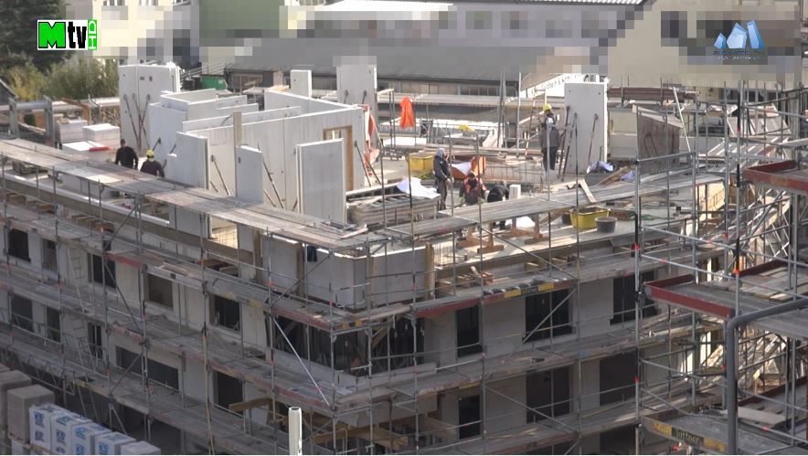 3. Haus C Sandwichwände der dritten Etage werden gesetzt.