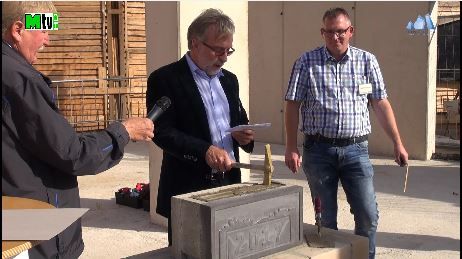 1. Grundsteinlegung "Rheinkiesel 714" in der baugrube von Haus A