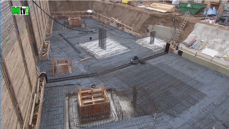 2. Baugrube Haus A Vorbereitungen zum Gießen der Decke über der 2. Ebene der Tiefgarage.